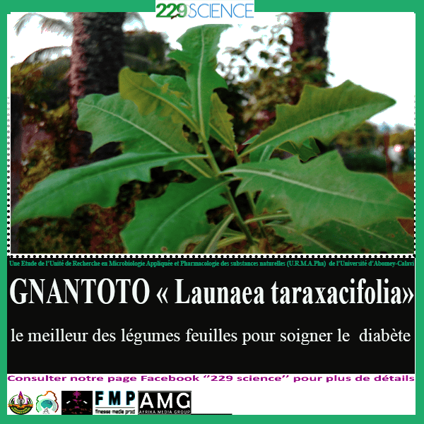 « Le diabète c’est quand tu es gros ». « Les gens deviennent diabétiques car ils mangent trop», ces préjugés que nous avons des diabétiques sont sûrement dûs au manque d’information sur cette maladie. Plus vous êtes gros, plus on vous voit comme un diabétique, c’est vrai le surpoids est un facteur de risque du diabète, mais il n’y a pas de relation systématique entre obésité et diabète. Car seulement un tiers des personnes obèses sont diabétiques. Le diabète quoi qu’on dise demeure un problème de santé publique. Face aux nombreux échecs des médicaments modernes, l’utilisation des légumes feuilles anti diabétiques devient la meilleure issue de traitement de cette affection. Nous sommes nombreux à utiliser des légumes feuilles pour traiter diverses maladies, notamment le Gnantoto (en langue Fon)« Launaea taraxacifolia », quand nous sommes diagnostiqués diabétiques.